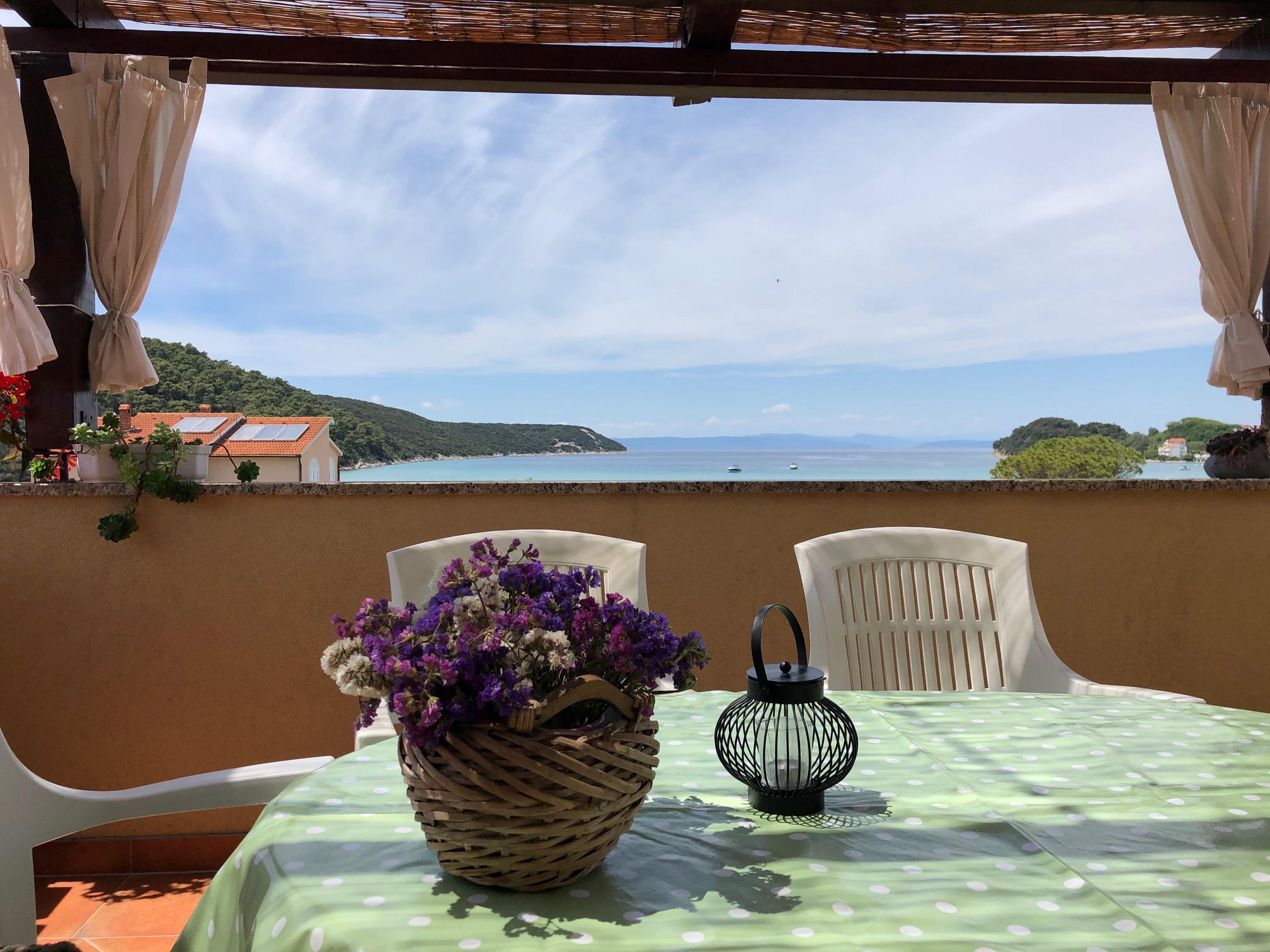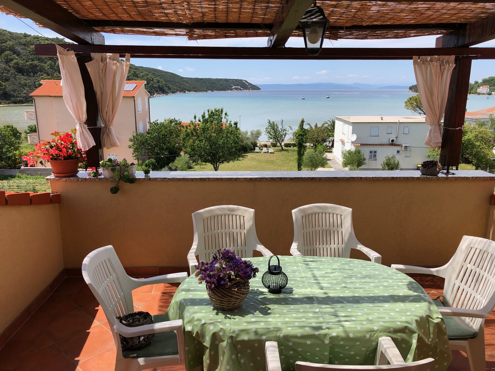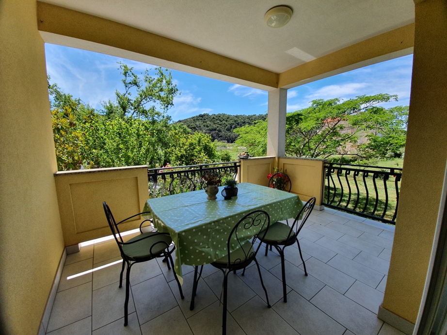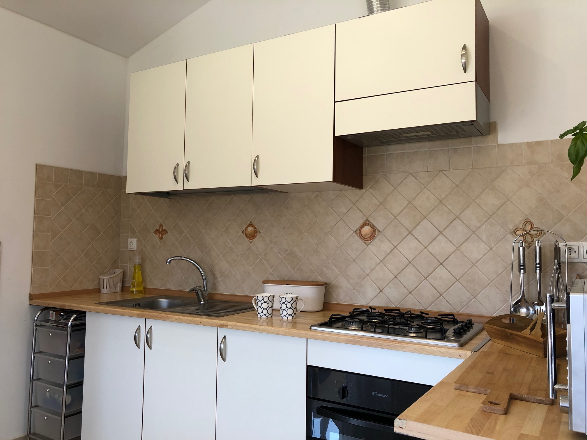 - Apartman čine 2 spavaće sobe (za 4 osobe), velika kuhinja (šporet, frižider, ostala oprema), trpezarija za 6 osoba, 1 kupatilo, klima uređaj i velika terasa sa pogledom na more.